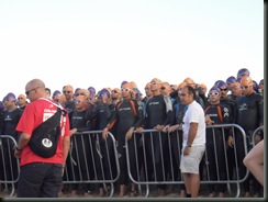 Cuando llegamos allí, con todo el mogollón de gente y la forma de hacer las transiciones con las bolsas que no lo acabo de ver claro, me pongo un poco nervioso, ya que, aún tenía que hacer muchas cosas y veía que no tenía mucho tiempo. Acabo de poner las barritas en la bici, las cosas en las bolsas y me voy a calentar un poco al agua.